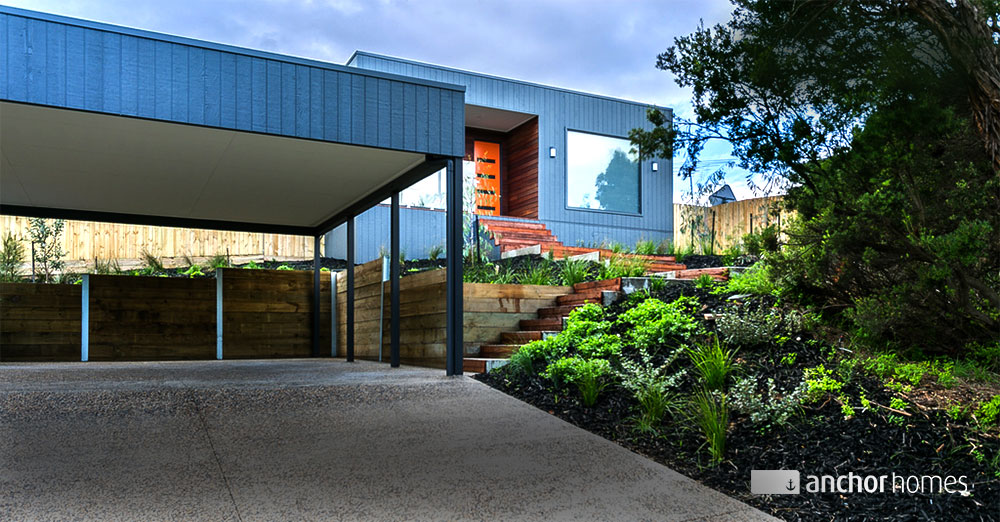 The Cubehaus façade brings a classy and modern feel to the home and ensures the sunken double carport blends seamlessly into the surroundings.