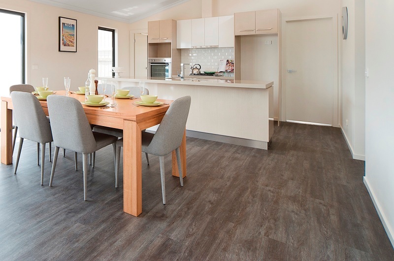 Vinyl flooring is a hassle free alternative to traditional wooden flooring. Vinyl is easy to keep clean and doesn't require regular polishing. Plus, it looks great (we often have people mistake the vinyl flooring in our modular display homes for real wood!).