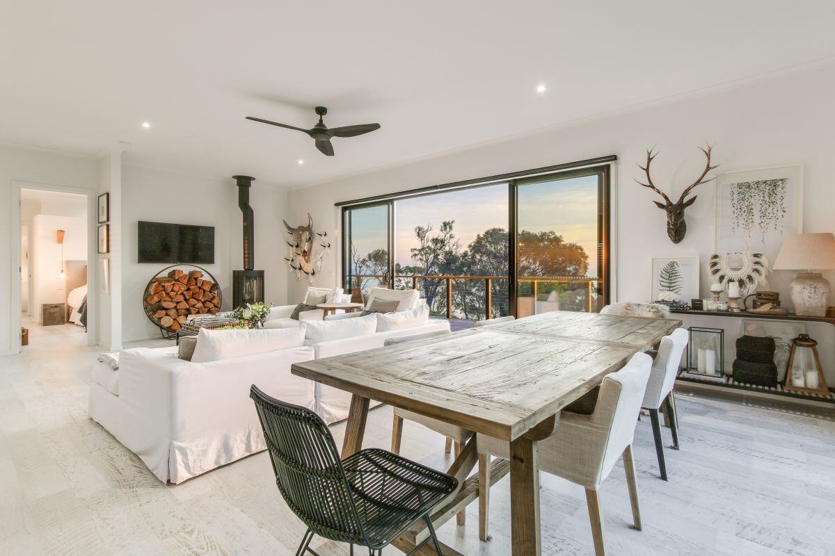 Located on the water in the Gippsland Lakes and beach region, this striking modern design is impressive inside and out. The spectacular views can be enjoyed from both the living area and deck, and the stylish interior selections take the home to another level.