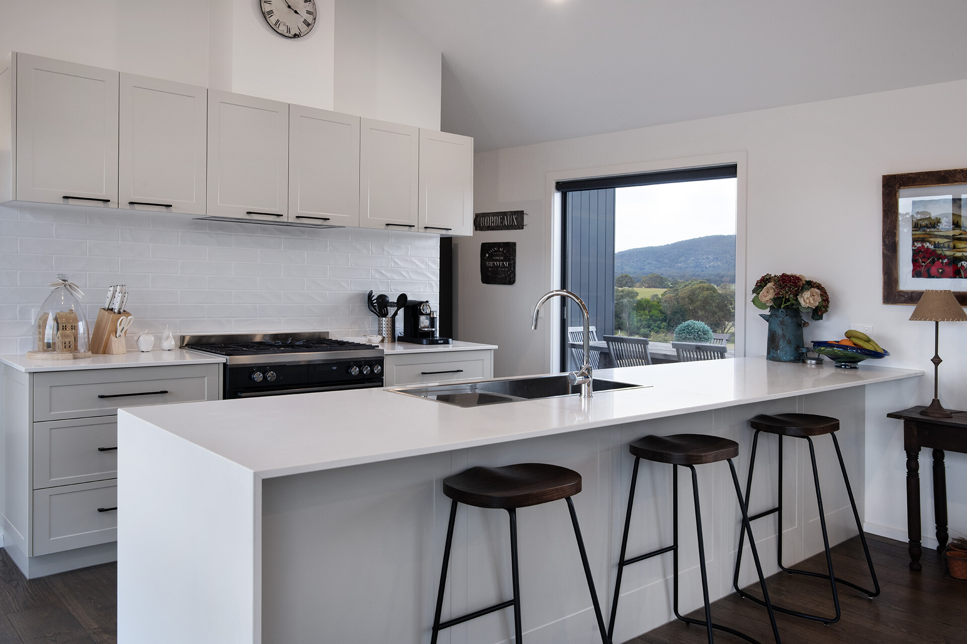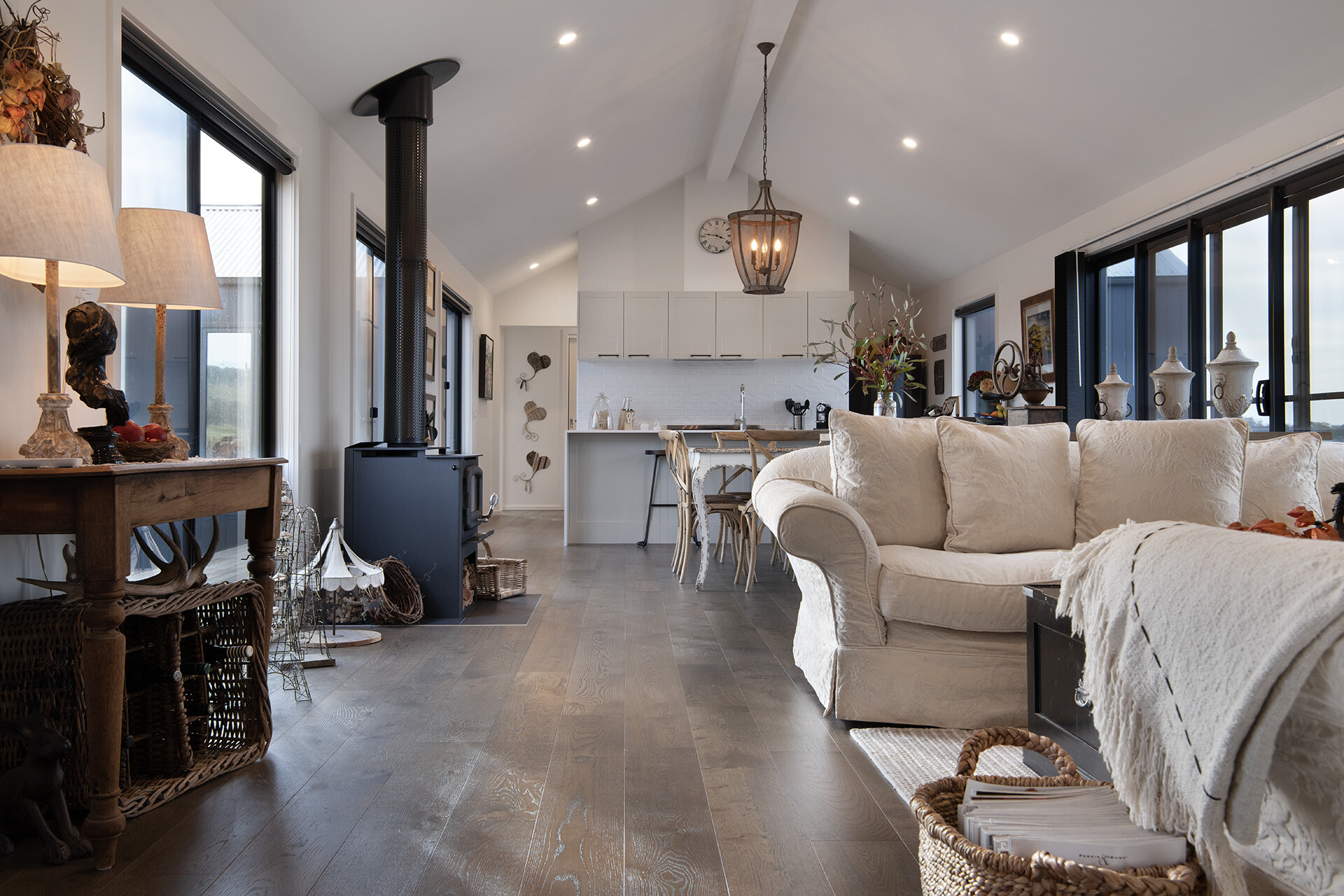 In the heart of Tarrengower, just 45 minutes from Daylesford in Victoria, our clients built their dream country home on their stunning acreage property. This beautiful three-bedroom, two-bathroom home seamlessly combines modern luxury with traditional country charm. Based on our popular Newhaven 21 design, it includes personalised modifications that suit our clients' lifestyle, making it the ideal rural retreat.